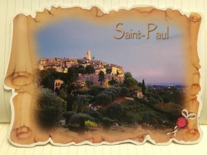 I received this postcard in 2010. In 2011, the name of the city was changed to Saint-Paul-de-Vence.