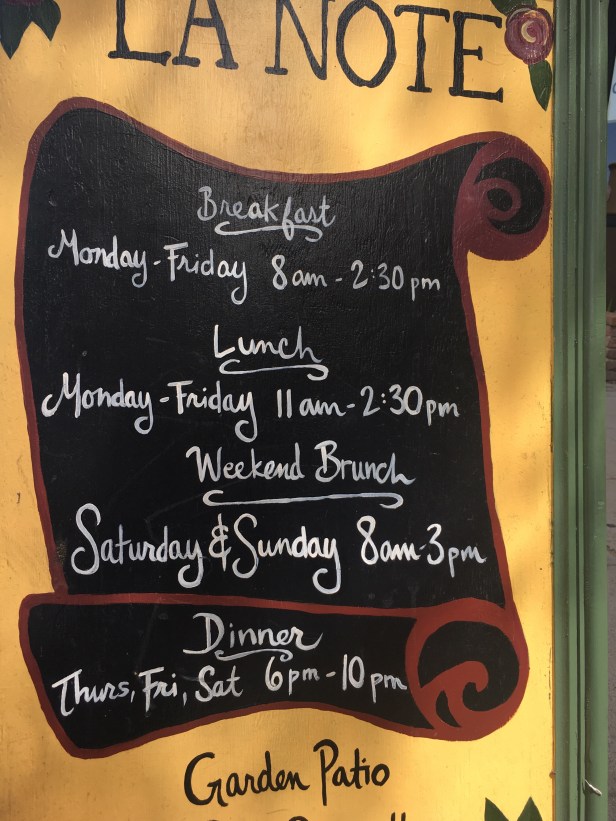 Go to La Note where brunch has been redefined as “a meal you plan to eat at breakfast time, but will eat by lunch time” (my words). Harsh, I know. But I’m not alone.