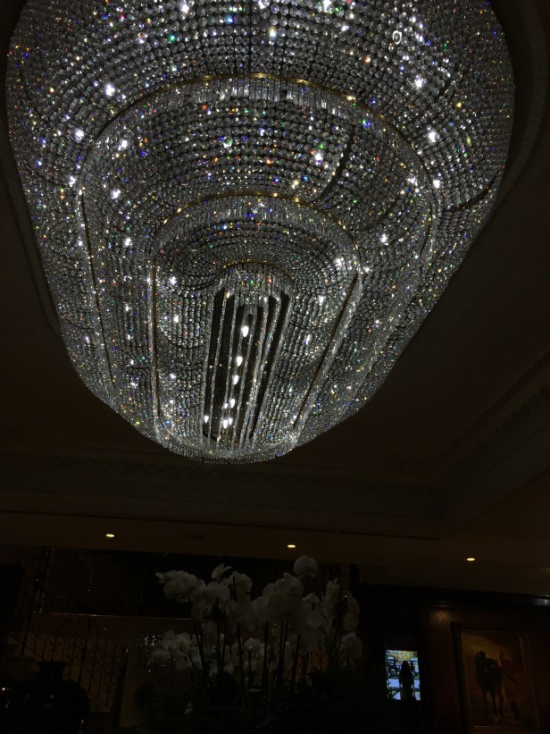 Look at the gorgeous chandelier that welcomes guests in the lobby: