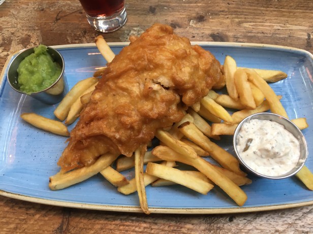 I’m glad they put you in a decent hotel! Love that you ate our traditional fish and chips! We tend to call the peas ‘mushy peas’ – haha! Not as posh as pea puree.