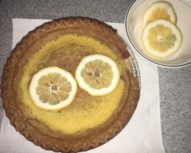 Next time, I will make my own crust. No, that’s a lie. I will try another kind of premade crust. I will also use less butter, like 50% less. I will put the pie pan on a cookie sheet. Just in case.