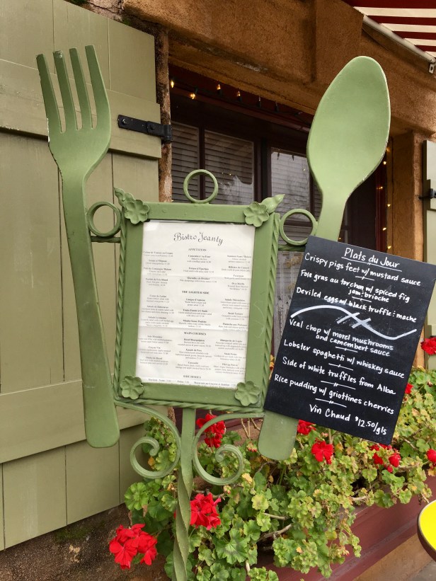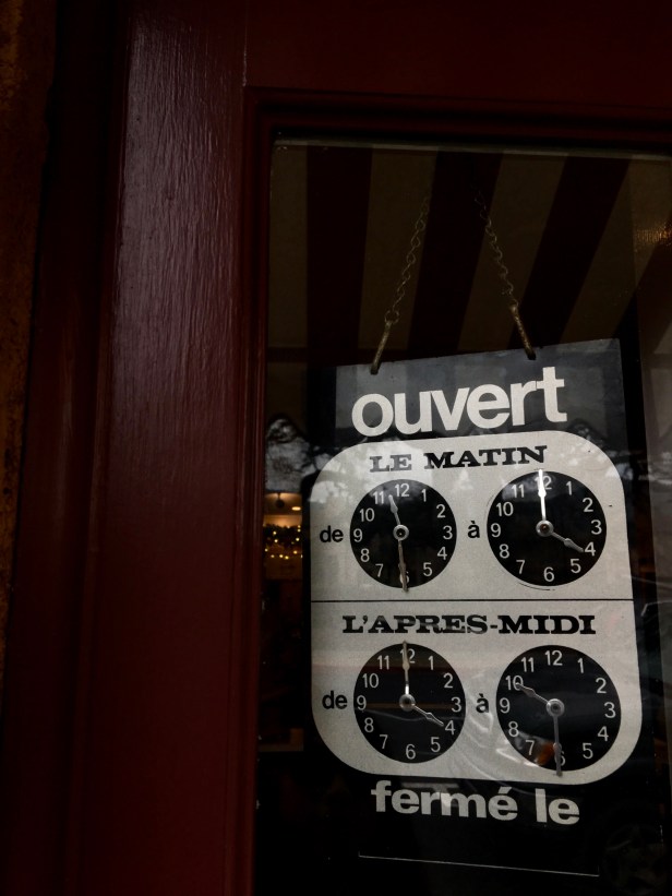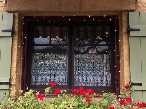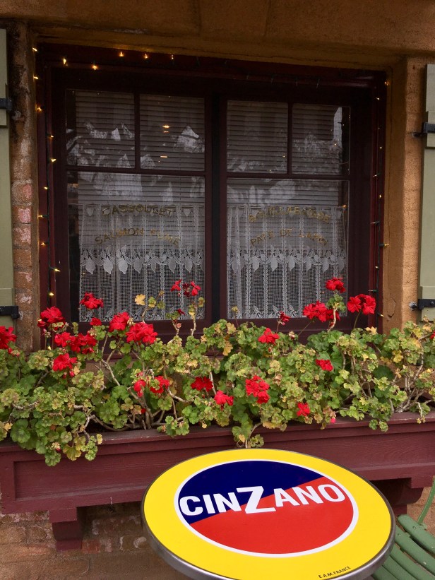 Signs on the windows indicate they serve cassoulet, saumon fumé, bouillabaisse, paté de lapin…