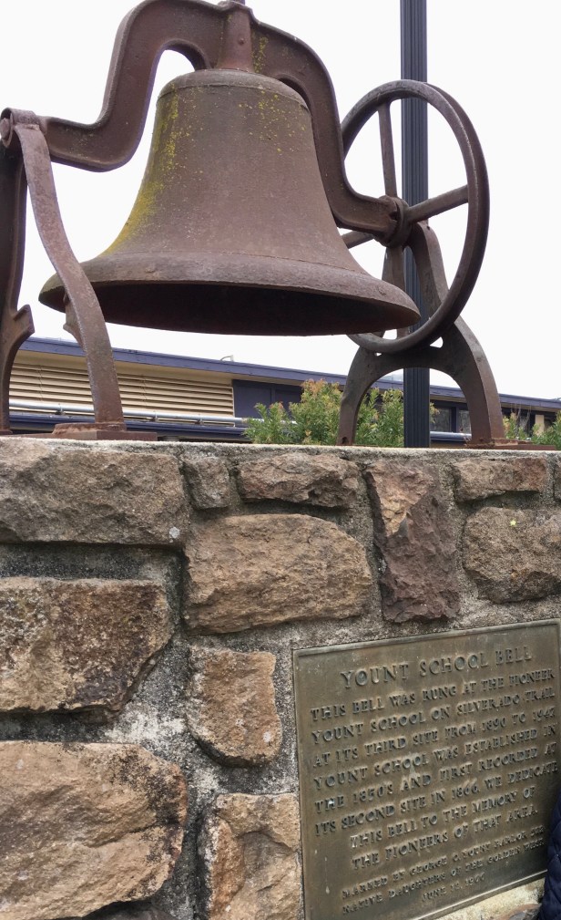This bell hung from Pioneer Yount School from 1890 to 1947. Today, it is in front of Yountville’s City Hall.