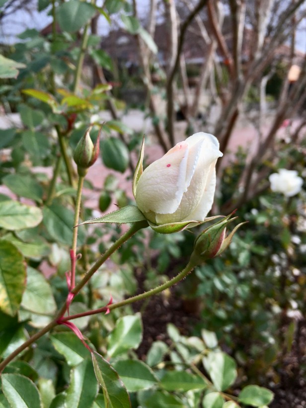 Keep walking through the courtyard (above) and you’ll arrive at the beautiful picnic garden. Here’s my favorite flower, the white rose: