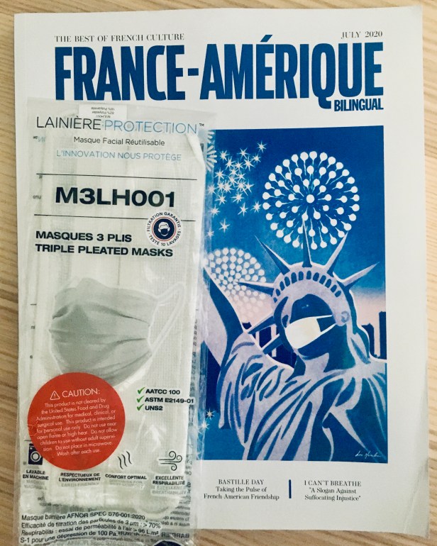 With their July 2020 issue, France-Amérique Magazine sent subscribers one complimentary face mask from Lainière Santé along with the message, “This is our way of saying merci for helping support our French culture magazine & bon courage.”