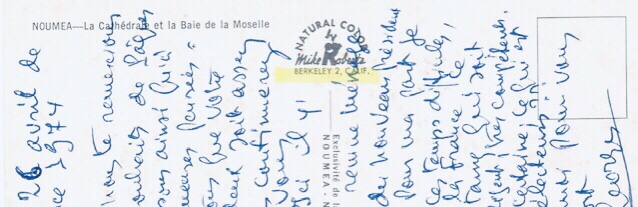 I like how the postcard was originally printed in California, then sent from New Caledonia to France, and now that I have it, it’s back in California!