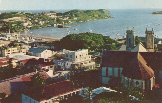 Bonjour! This week’s carte postale features Moselle Bay and the Cathedral in Nouméa, New Caledonia, the French overseas territory located in the South Pacific.
